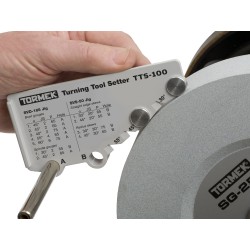 Attenersi alla forma selezionata ed evitare di passare da una forma all'altra. In questo modo si otterrà il massimo vantaggio dal posizionatore Tormek TTS-100, poiché è possibile replicare immediatamente e sempre la stessa identica forma. Questo dispositivo rende l'operazione di affilatura più efficiente, lasciando quindi più tempo per la tornitura.