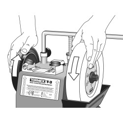 Durante il montaggio della mola, girare manualmente il dado Ezylock in posizione in senso antiorario. Il dado si serrerà automaticamente alla giusta coppia durante la prima affilatura.