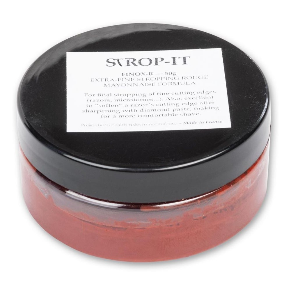 Rider Extra Fine Stropping Rouge è una pasta fine per il taglio e la lucidatura da utilizzare sulla Rider Strop o su qualsiasi altra coramella in pelle.