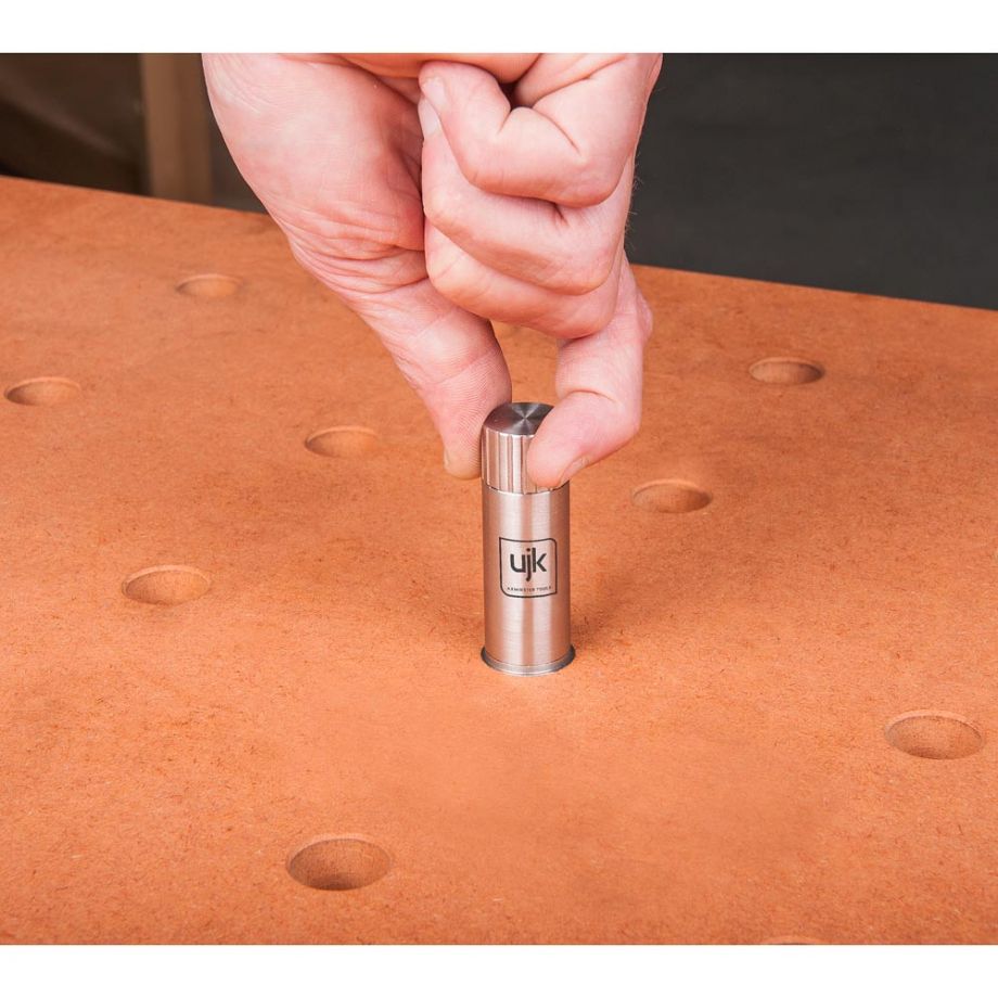 Sviluppato dal genio di Peter Parfitt e prodotto con precisione ingegneristica da UJK Technology, il Parf Guide System MkII è un kit di foratura che permette di creare una griglia di fori da 20 mm (standard MFT) su un piano in MDF o multistrato in pochissimo tempo e con una precisione millimetrica.