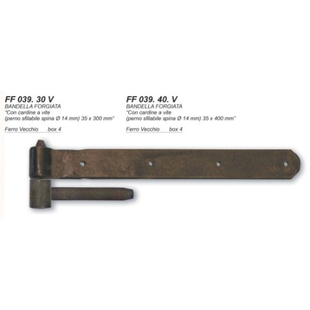 Cerniera a bandella ferro forgiato con cardine a muro, da 35x300 mm.