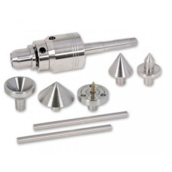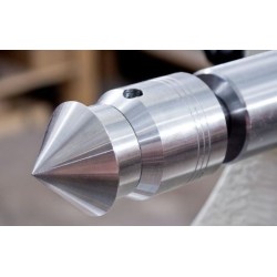 Forse la miglior contropunta CM2 universale oggi disponibile. Costituita da due cuscinetti sigillati nel corpo e all'estremità ha un cono per il montaggio delle varie punte intercambiabili (pz.6 ), serrate da un mandrino azionato da due anelli forati. La contropunta è fornita con tre punte, un cono di 60 ° standard per lavoro generale, un 9,5 millimetri (3/8 ") di diametro da 16mm (5/8") e una tazza o anello centrale . In aggiunta alle punte standard, ci sono tre ulteriori accessori inclusi che aumenteranno ulteriormente l’utilità della contropunta. Un mini frontalino da 30 mm di diametro con una vite centrale che è molto utile quando si torniscono calici a stelo lungo, un centro conico di 90 ° per l'uso all’interno di un foro e una testa conica per una rapida centratura per piccoli lavoro o come supporto quando si tornisce forme sferiche.