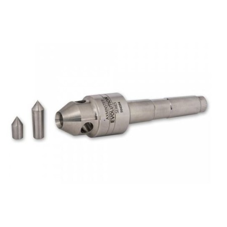 Un ottimo miglioramento della contropunta precedente, questa serie Evolution dispone di tre fori per l’espulsione del perno. Con i perni smontabili corti e lunghi, cuscinetti a sfere singoli e un diametro foro 8mm (5/16 "), questa contropunta è un aiuto prezioso . Il punto corto sporge tre millimetri al di là dell’anello e permette un 'impronta precisa sul legname. Avendo fatto il piccolo forellino , il perno può essere rimosso dalla contropunta consentendo di fare un foro preciso. Un accessorio veramente multi-funzionale, degno di un posto nella cassetta degli attrezzi di ogni tornitore.