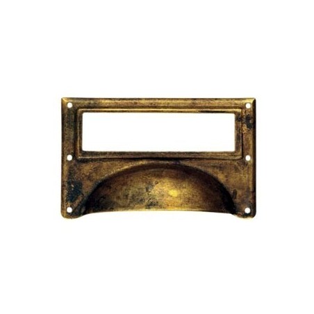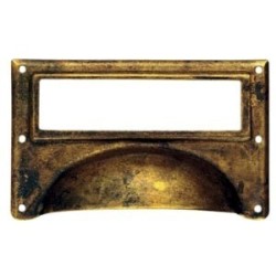 Maniglia in lamierino ottone anticato con portaetichetta da 80 mm.