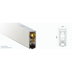 Sistema di fissaggio: tradizionale con la sfilabilità del proflio con guarnizione; alternativa, sfilabilità parziale del profilo con guarnizione mediante sblocco del fermo in plasica nel profilo da fissare (T017).