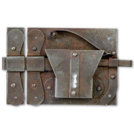 Serratura ferro forgiato per portone DX entrata 105 mm, da 200x180 mm.