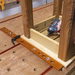 Il morsetto di fissaggio del filo della vite si adatta perfettamente a qualsiasi foro del cane da banco da 20 mm. È un'aggiunta ideale ai banchi da lavoro multifunzione UJK e al tavolo multifunzione Festool MFT / 3.